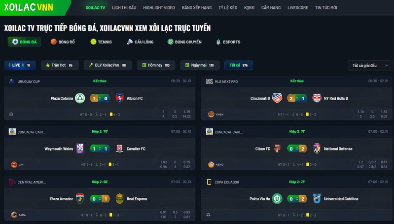 - Kết quả toàn cầu: Từ Premier League, La Liga đến giải nhỏ như VĐQG Bỉ, Bồ Đào Nha, hay cả V-League. Không thiếu trận nào.